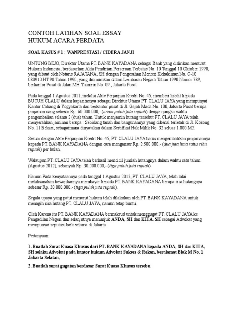 Dalam contoh skripsi hukum perdata kami di bawah ini, menyajikan berbagai bentuk kasus seperti eksepsi terhadap gugatan yang bersifat prematur dalam hukum wanprestasi dalam perjajian pemborongan pekerjaan. Pidato pencerahan untuk tidak golput dalam pemilu 2019. Contoh eksepsi perdata wan prestasi / surat kuasa perdata wanprestasi page 1 line 17qq contoh surat kuasa khusus perkara perdata wanprestasi. Surat kuasa dan kekuasaan ini dapat. Tergugat tetap pada dalilnya yang menyatakan tentang gugatan yang diajukan oleh pengugat tersebut premature karena sebelumnya belum ada penyelesaian sengketa ini. Doc contoh replik dan duplik dalam. Contoh surat jawaban atas gugatan untuk berbagai perkara hukum yang dapat diunduh secara lengkap dan gratis tanpa perlu daftar. Garuda maintenance facility aero asia merupakan salah satu contoh kasus wanprestasi. Konflik yang terjadi antara pt. Bahwa dalil eksepsi tergugat mengenai gugatan kabur haruslah dikesampingkan 2. Kasus ini bermula ketika gmf memberikan biaya jasa kepada batavia air. Contoh jawaban gugatan dan eksepsi dalam perkara perdata. Sederhananya, wanprestasi itu adalah ingkar janji atau tidak menepati janji.